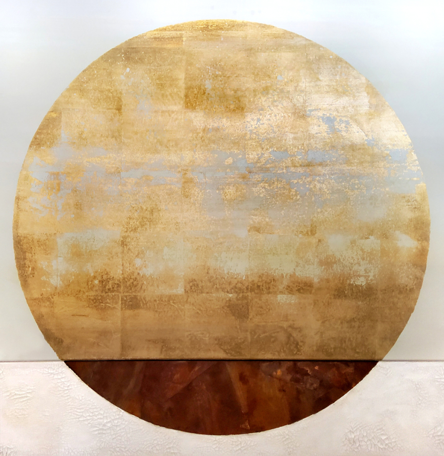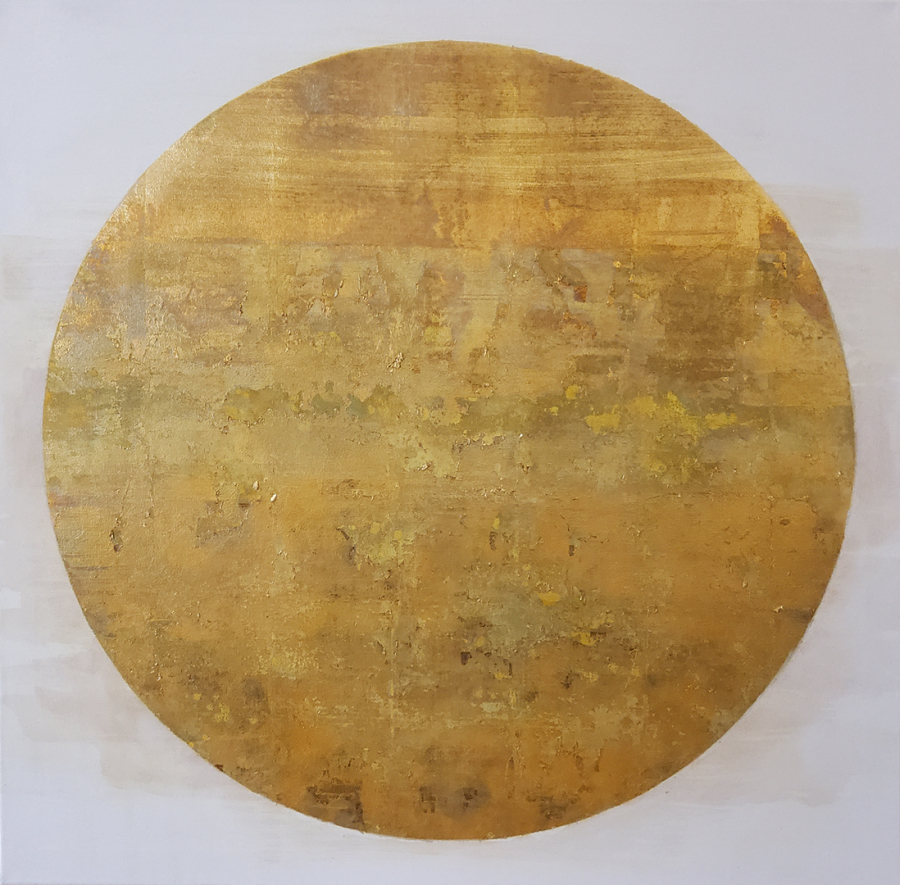 2025 100x 100 cm Öl, Acryl und Metall auf Leinwand